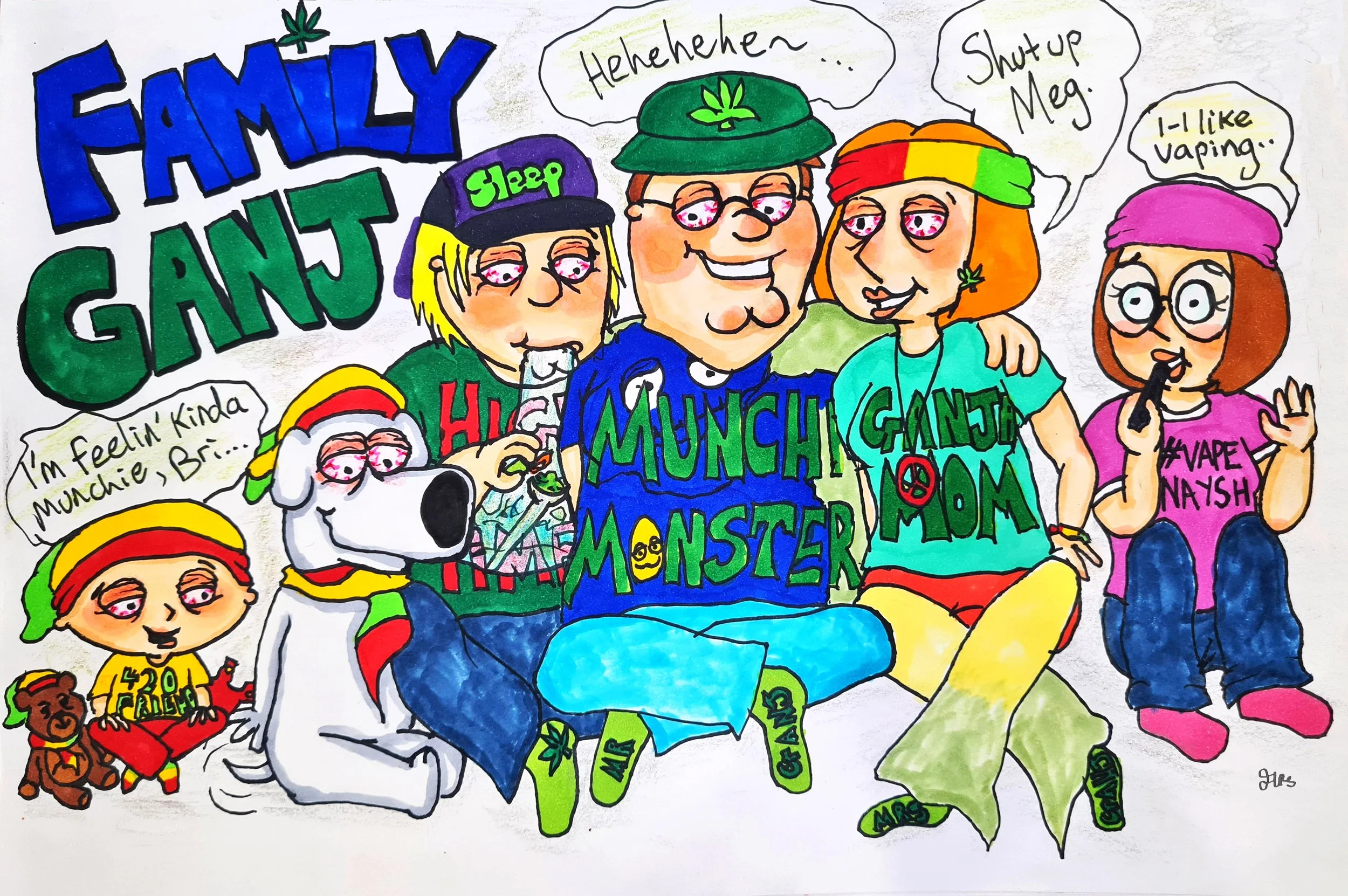 Upon seeing a picture of Marge Simpson with a very large “nug” of wacky baccy for hair I was inspired to draw herself & Homer as the most stereotypical portrayal of stoners I could come up with. I had so much fun with that I started thinking about how funny it would be to draw a bunch of other characters as stereotypical stoners. As my hit list of characters grew a series formed that I have affectionately dubbed “The Stoney Series”. If you don’t enjoy cartoons or devil’s lettuce-related humour I would suggest scrolling on by and checking out some of my other work. But for those who are interested, I hope this series gives you a good laugh!