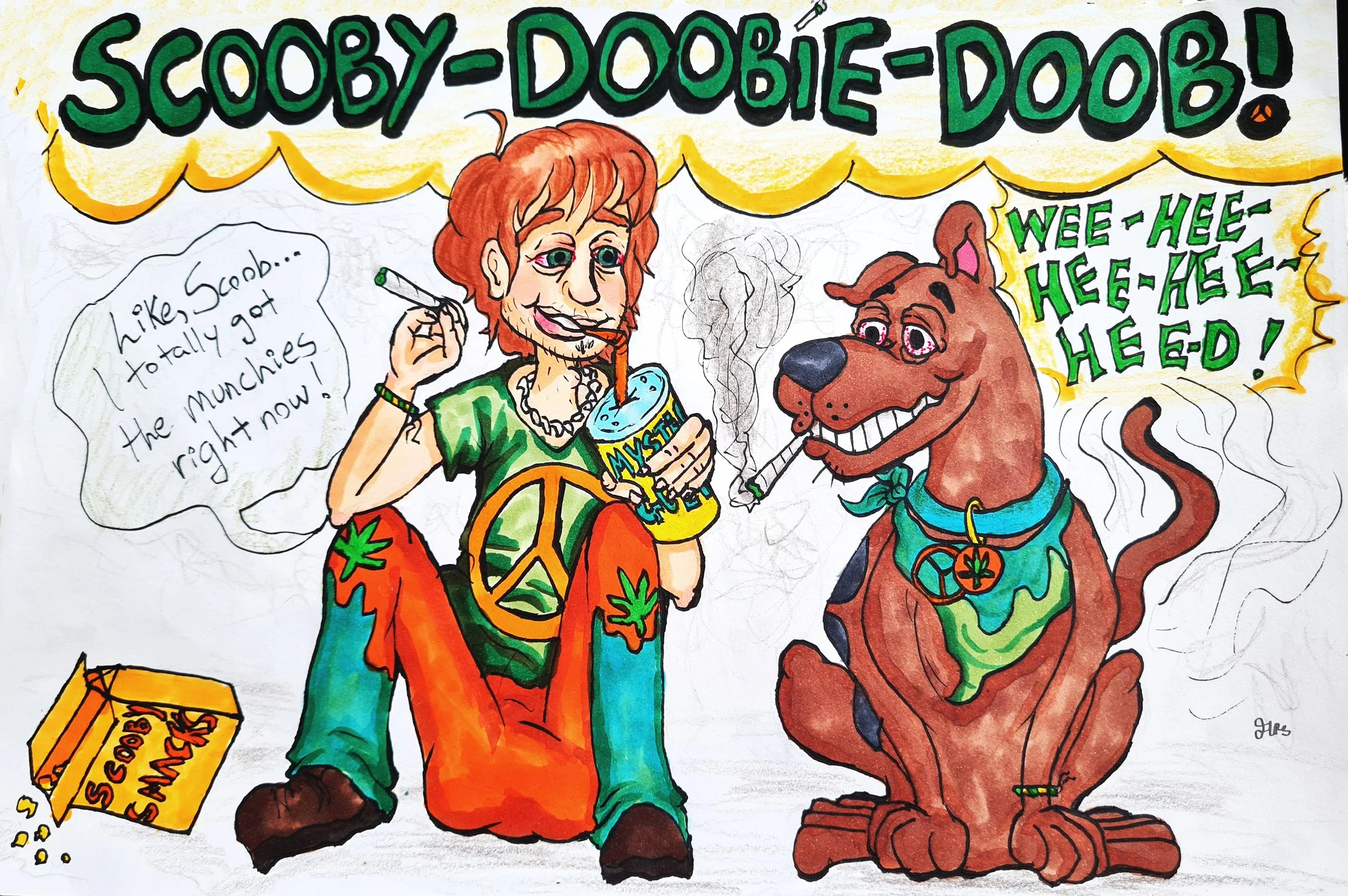 We all know this goofy duo partake in hotboxing the Mystery Van when the gang aren’t solving mysteries, Shaggy’s favourite name is Mary Jane for fuck’s sake. Enjoy my interpretation of what I think that would look like. Because they are one of the few I think are quite stoney-spirited on their own, I only made my own artistic interpretations of their usual get-up. Spot the details & differences!