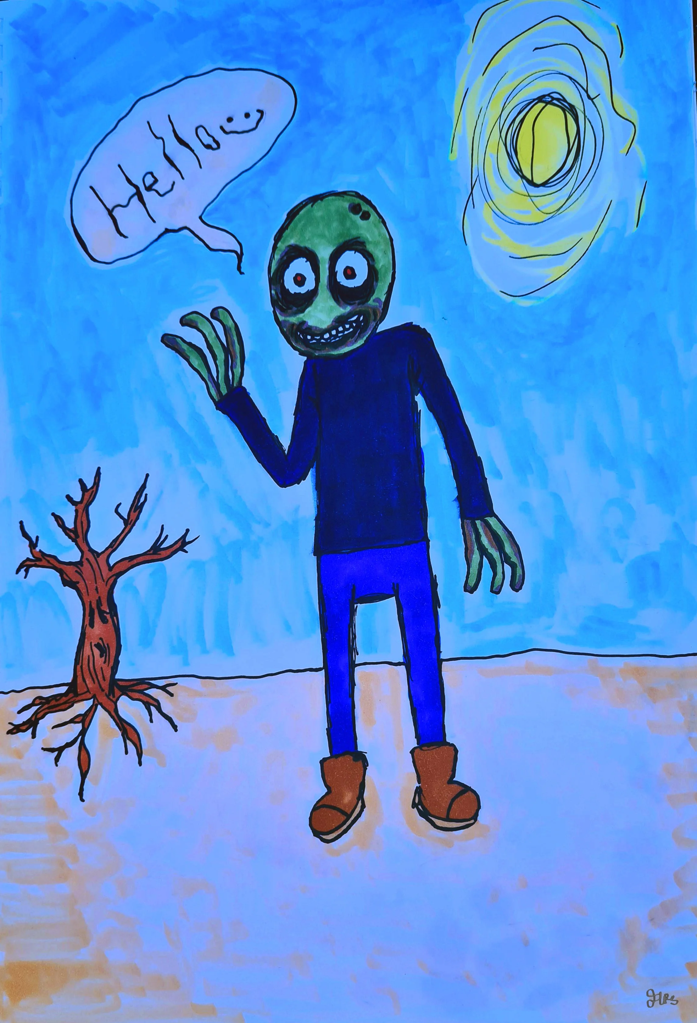 Somehow my first ever drawing of my favourite rusty-spoon-lovin’ creep Salad Fingers. A gift for my partner’s Mum who is also a Salad Fingers fan.